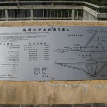 ダムサイト左岸に管理所があり、その近くにダムの仕様と構造を示す説明板や駐車場とベンチがありますが、トイレは無いので注意が必要です。