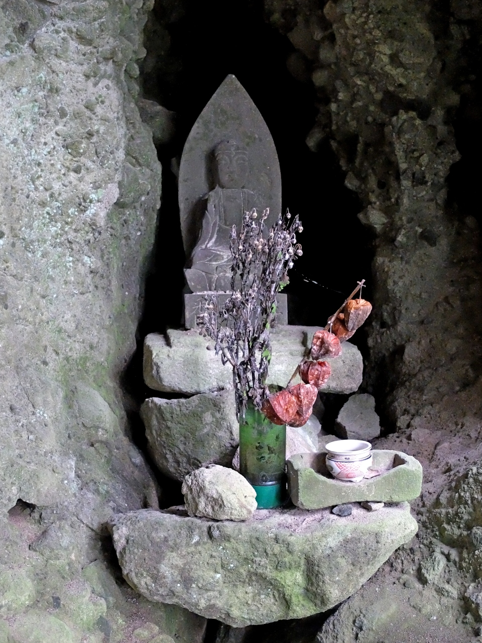 真中より県道34号線を3㎞ほど杵築方面に行くと小さな駐車スペースとともにある.見過ごしそうな場所だ.急な階段を約80段上る.本当に山のやぶの中にある.だいぶ風化していたが,上半身が比較的残っていた不動明王がなかなかよかった.登る価値はあると思う.