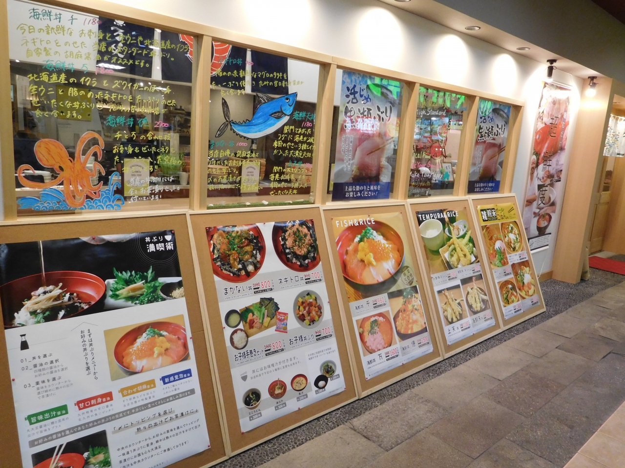 リバーウォーク北九州の4階にある、 関門や玄界灘、近海の新鮮な魚介類を使ったメニューが沢山あるお店です。店内は、木のぬくもりが感じられる、おしゃれなカフェスタイルでした。平日は海鮮丼がお得な値段が食べられました。4種類のお醤油から選び、最後の〆は、お茶漬けにして食べる事も出来るようになっていて、とても美味しかったです。