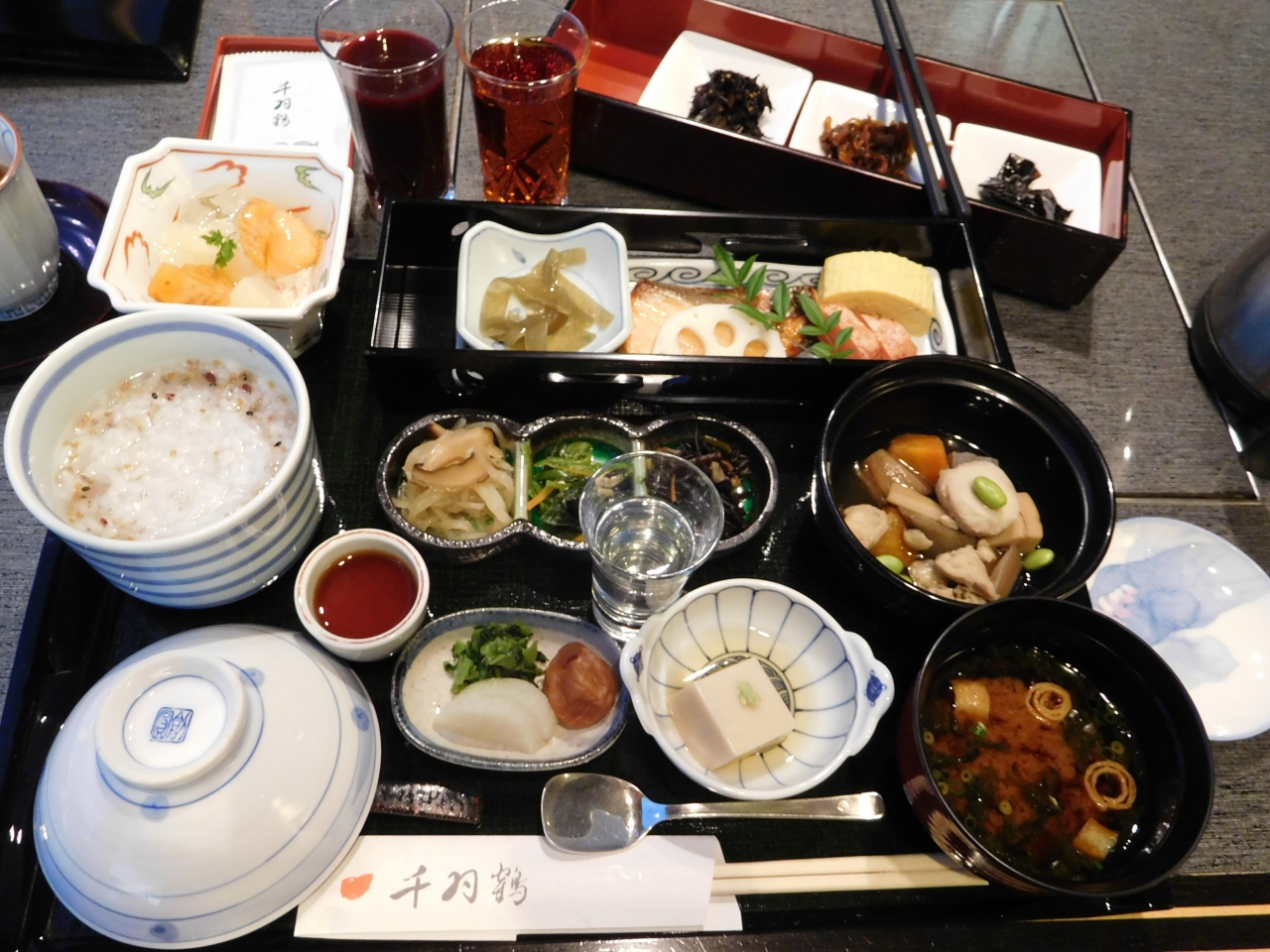 ホテルニューオータニ博多の14階にある日本料理のレストランです。ご飯は、白米、白粥、雑穀米の薬膳粥から選ぶ事が出来ました。ルイボスティーと野菜ジュースはセルフサービスでしたが、お膳で運ばれてくるので、ゆったりと朝食を食べたい時にはとてもおススメだと思います。レストランの窓からは、交差点を走る車の様子が見えました。
