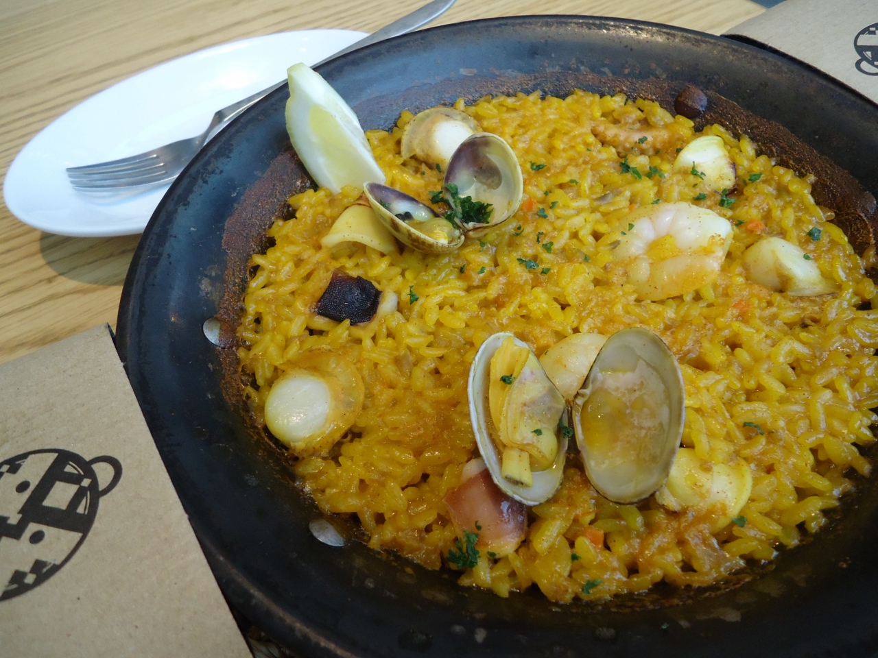 銀座にあるビルの8Fにありました。窓からの光がとてもあかるく開放的な店内です。スペイン料理にあっていてとてもいい感じです。ランチで利用しましたがパエリアはみんなでシェアするものと思っていましたが一人前からオーダーできるので気軽に行けました。値段もリーズナブルでよかったです。