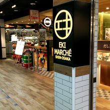新大阪駅構内(エキナカ)にあります。大阪のおみやげを買うことができるお店がたくさんあります。お店の中には。人気の蓬莱551もあり、ここではチルドの豚まんやシューマイなどを買うこともできるので、おみやげにオススメです。また、飲食店も充実しているので、新幹線の待ち時間などに立ち寄るのも良いです。