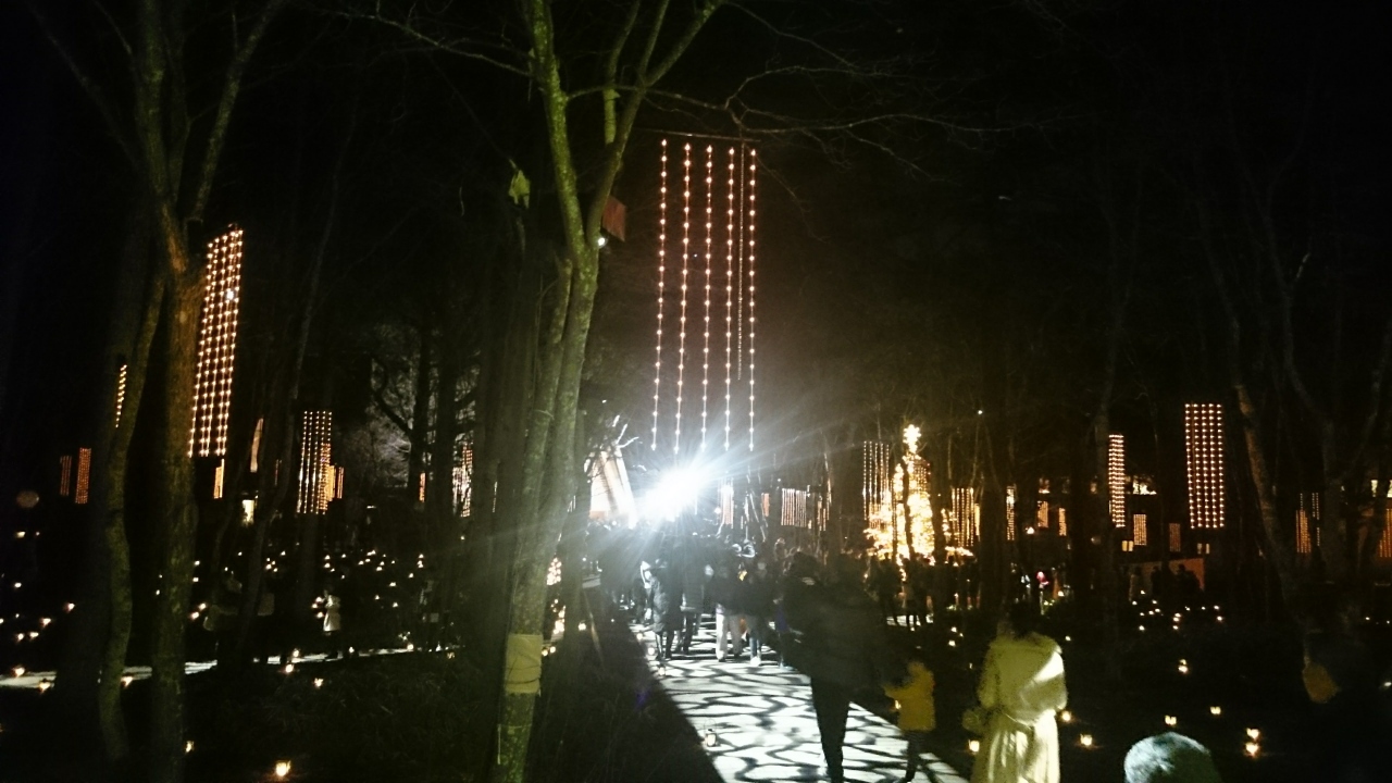森の中にキャンドルがたくさん散りばめられており、ツリーもキレイ。
