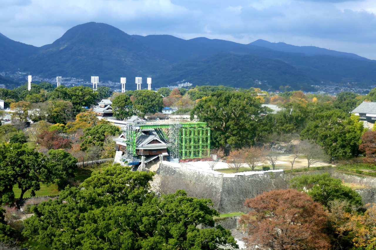 14階の展望室からの熊本城 現在周囲からしか眺望できない熊本城がよく見える
