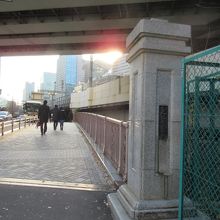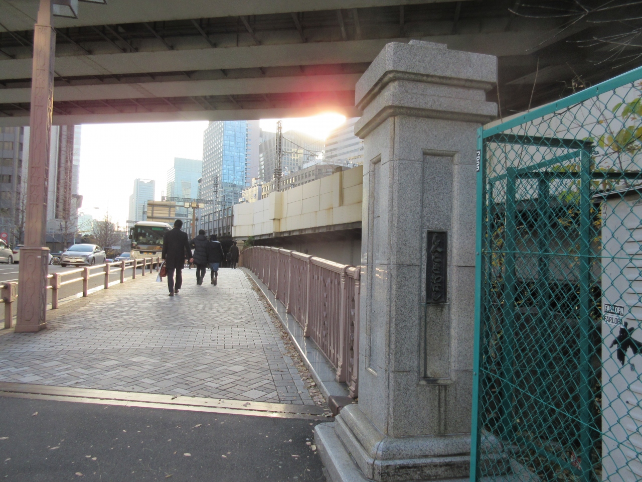 日本橋川にかかっている橋で、常盤橋公園から中央区側をたどる「江戸通り」にある橋です。長さは39.35mで幅は28.2mです。あまり橋らしくないです。付近は再開発の最中のせいで、目的地に行くのに道を迷いそうになった時に見つけました。