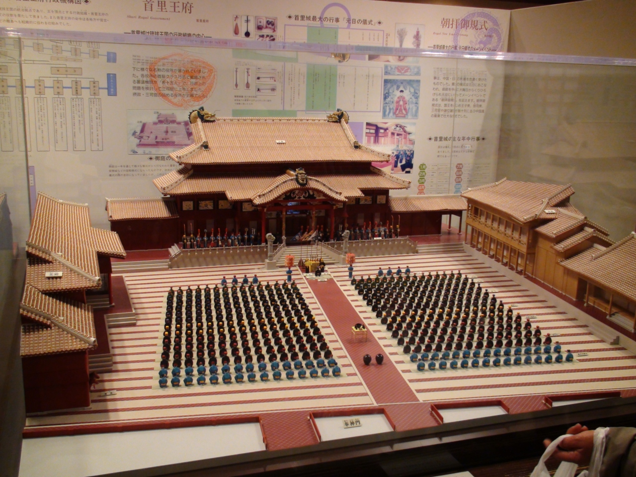 館内には首里王府について様々な解説や展示物があるが、なかでも御庭での儀式の模様を再現した模型が見どころです。