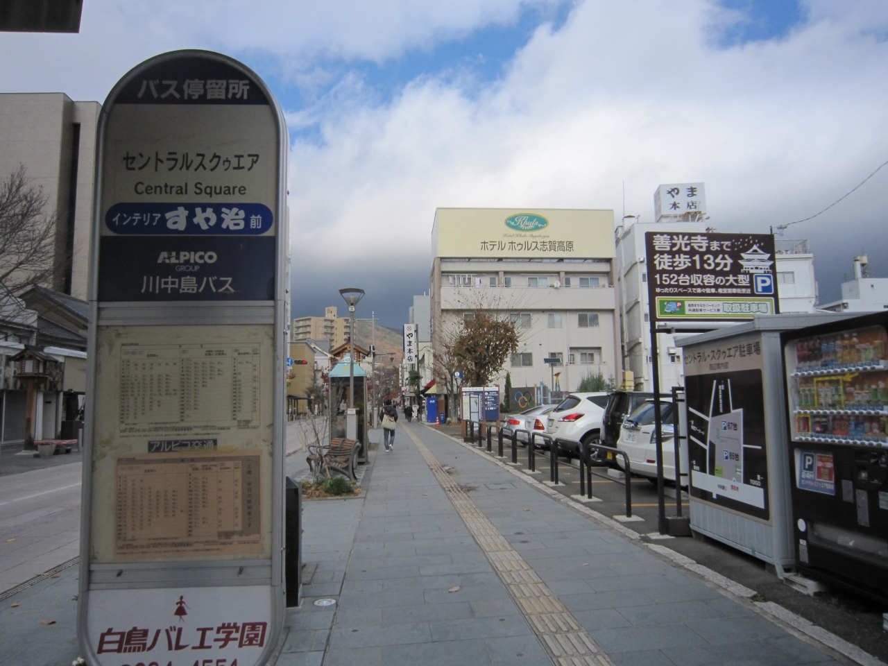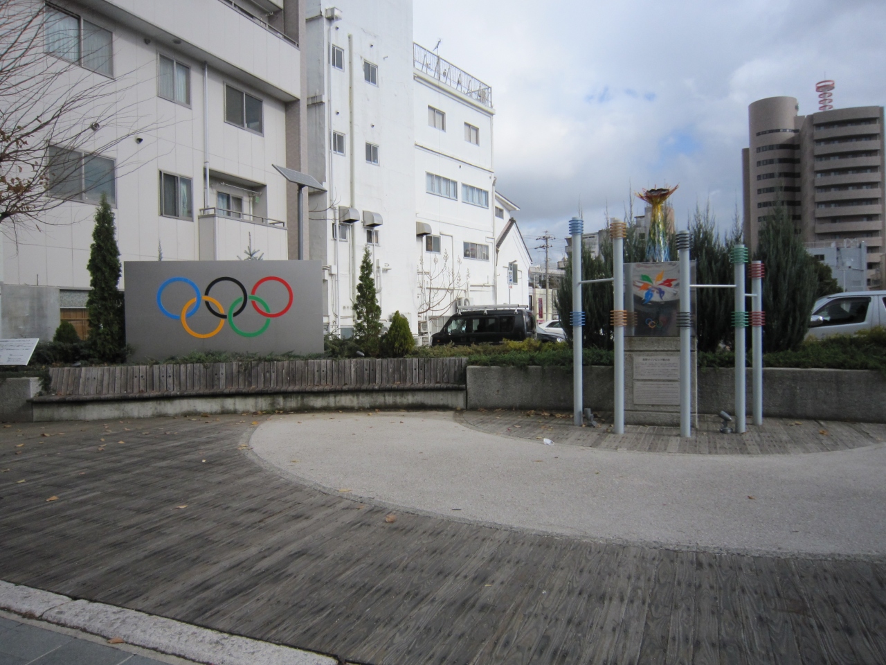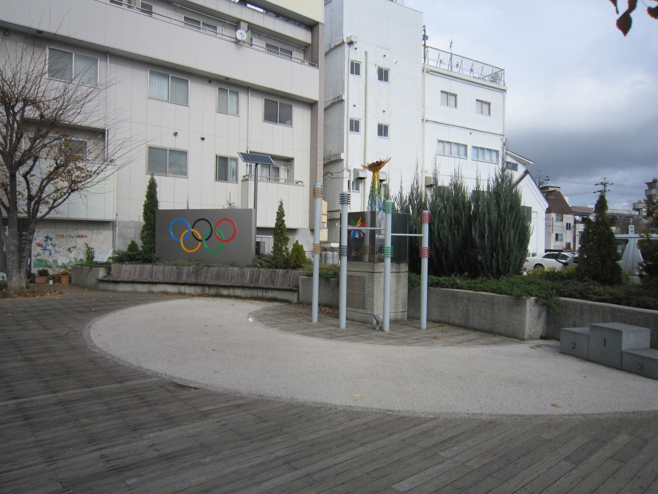 まちのなかの表彰式会場でメモリアルパークとして整備され、オリンピックの成功と熱気を後世に伝えるためメイン聖火台のモニュメントととし設置されたそうで表彰台もありました。当時は凄い熱気だったのでしょうね。現在メモリアルパーク以外は善光寺まで徒歩13分の駐車場となっており有効活用しているようです。