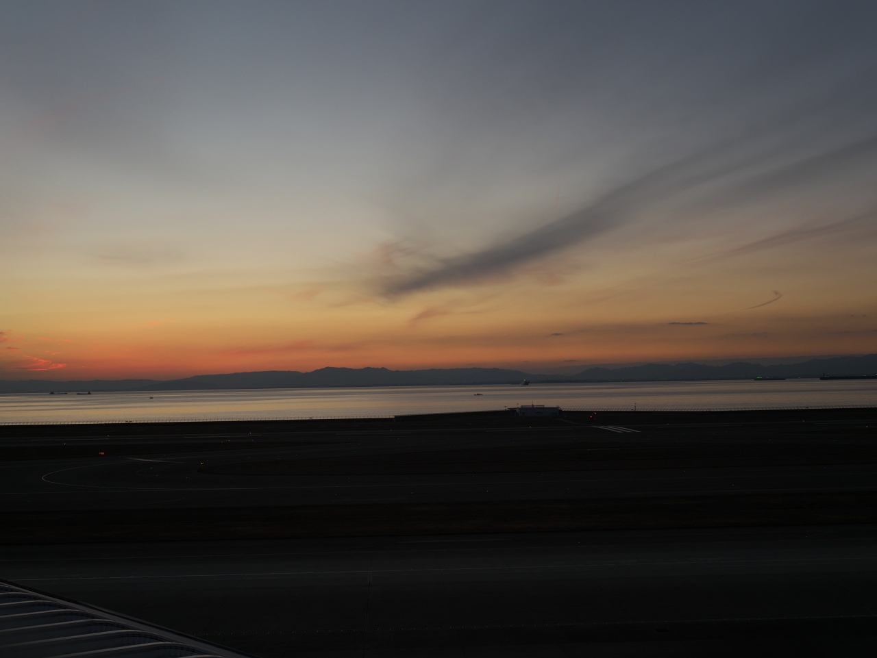 夕方だったので、遠くの夕焼けがきれいででした。