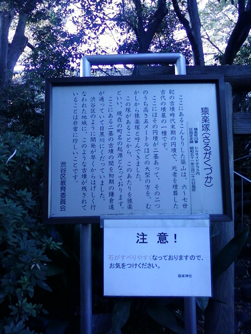 猿楽塚は、東急東横線代官山の駅から四分くらいのところにあります。6~7世紀に起源をする円形の古墳です。渋谷区にはほかにも古墳があったというのがなんだか不思議。それでもほとんどなくなった中で、ここは現存する大変貴重な存在だそうです。代官山というと、とってもおしゃれな場所で、こんな風に立ち止まって歴史に思いを寄せられるのが素敵ですね。