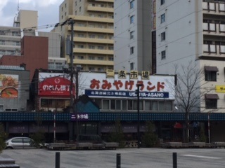 海産品が欲しい友人の為に数ヵ所巡ろうと言う事で名の知れた二条市場からスタートしました。狸小路のアーケード街の端から道1本ですので都市中心部の場外市場風の商店街だと思います。テレビ塔東に南北に走る50mほどある創成川通りの東対岸に市場はあります。