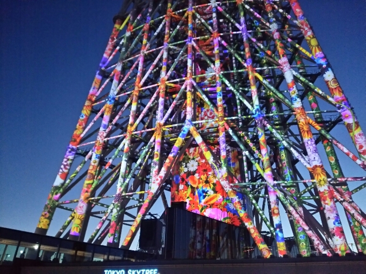 ちょうどクリスマスに行ったので、スカイツリーに映し出すプロジェクションマッピングを見ることができました。