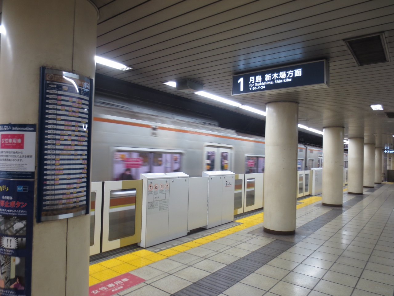 東京メトロ有楽町線です。銀座一丁目駅から豊洲駅まで乗車しました。銀座界隈から豊洲に行くには、この路線が一番便利です。乗車した銀座一丁目駅には、ホームドアが整備されていて安全面に配慮されています。日中ということもあり、車内は空いていて、余裕で座ることができました。豊洲駅は豊洲センタービルにも直結していて便利です。
