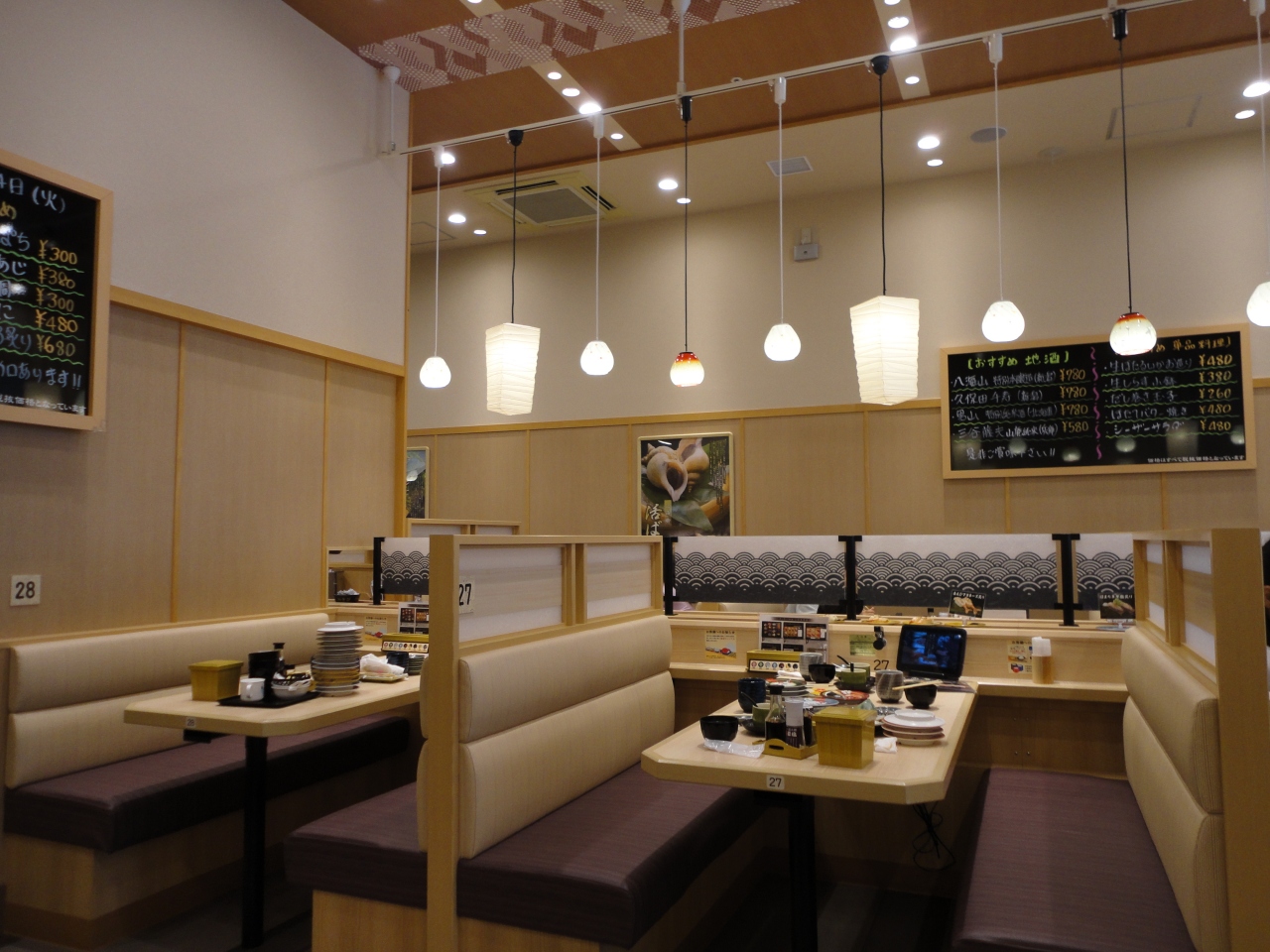 店内に入りやすい構造になっていて、入り口近くにはカウンター席があり、さらに奥にはテーブル席が意外と多くあります。店員さんは皆笑顔で対応してくれて、とても雰囲気がいいです。タッチパネルで注文します。わかりやすい操作で注文できますから、お年寄りでも迷うことなく注文できます。料金はやや高めですが、百円寿司のような貧弱な寿司ではなく、ネタが大きくて新鮮ですから料金に見合うかそれ以上の価値がある寿司を食べることができます。お味噌汁はお代わりができます。一人あたり2000円の予算で6・7皿は食べれます。買い物ついでに美味しい寿司が食べられますから、利用する価値が大だと思います。