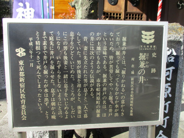 東京メトロ有楽町線飯田橋駅B3出口から外堀通りを市ヶ谷方面に進み東京理科大の先の市谷船河原町交差点を右折すると坂下に船河原町築土神社。左手前に「堀兼の井」説明板があり逢坂 (市谷船河原町) の標識がたってます。逢坂の由来は武蔵守が美しい娘と恋仲になり、のち都に帰って没したが、娘の夢によりこの坂で再び逢ったという伝説に因み、逢坂とよばれるようになったそうです。ロマンチックな坂です。高級住宅街の急勾配な坂道です。