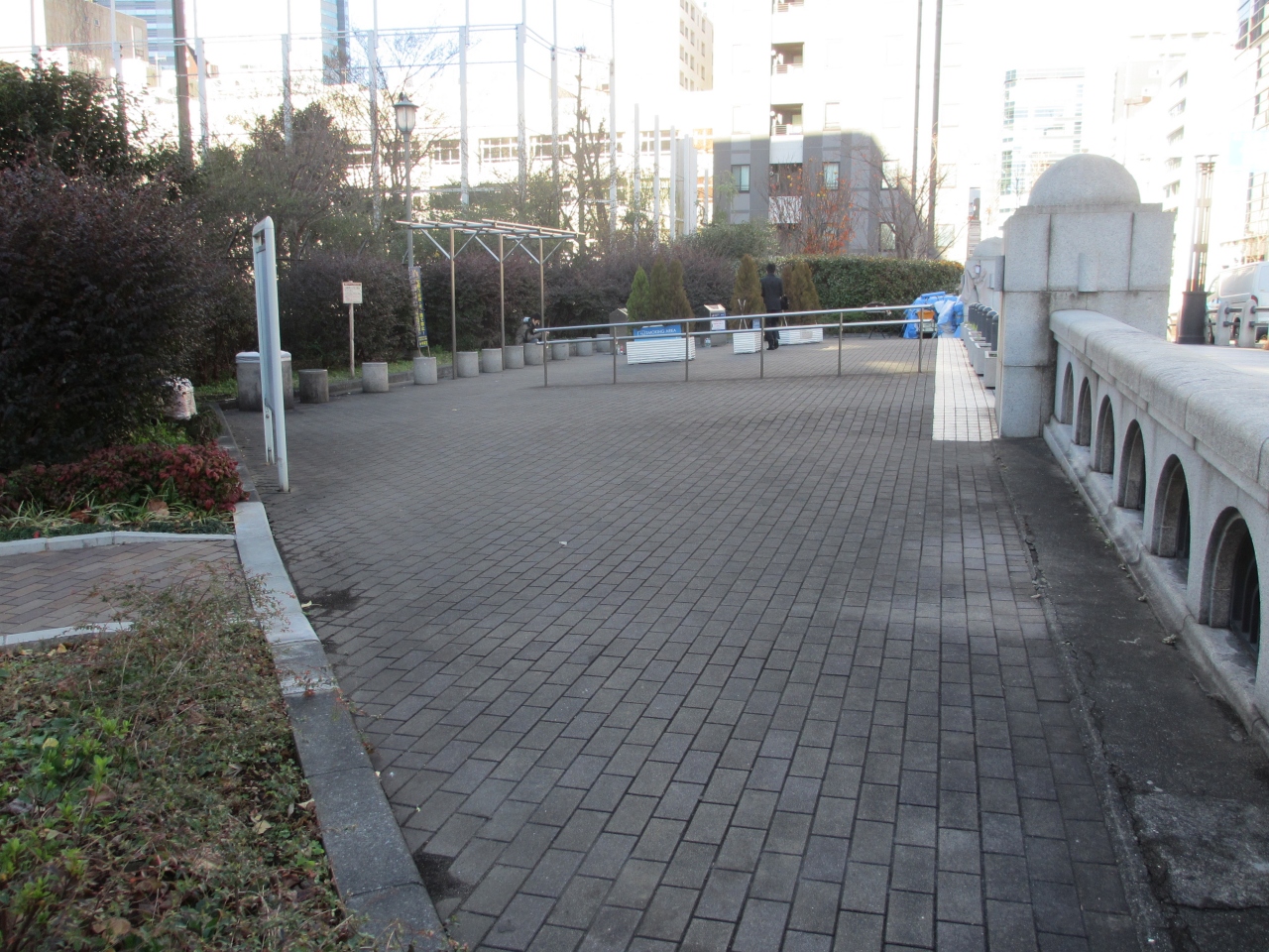 築地・中央市場通りに架かる千代橋の両側に造られている小さな公園です。国税局側に造られている公園内には喫煙コーナーが設置され、近くで働くビジネスマンや作業員の休憩場所になっています。ホームレスの荷物も置かれていることから、環境も良いとは言えません。ベンチも設置されていますが、あまり休憩したり利用したりする気持ちにはなりません。タバコの匂いもきつく、喫煙者のための公園になってしまっている気がします。