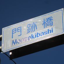 場所は晴海通り沿い、築地本願寺そばにあたります。現在は川も流れていませんし、橋もありません。門跡橋と名付けられた交差点が、かつて橋があったことを物語っているだけです。交差点近くには川が流れていたことが連想できる遊歩道が造られていたり、橋に使われていたと思われる柱の一部を柵の中に見つけたりすることができます。築地周辺を歩いていると、かつて築地にあったものの痕跡を見つけることができ、楽しい散歩ができます。