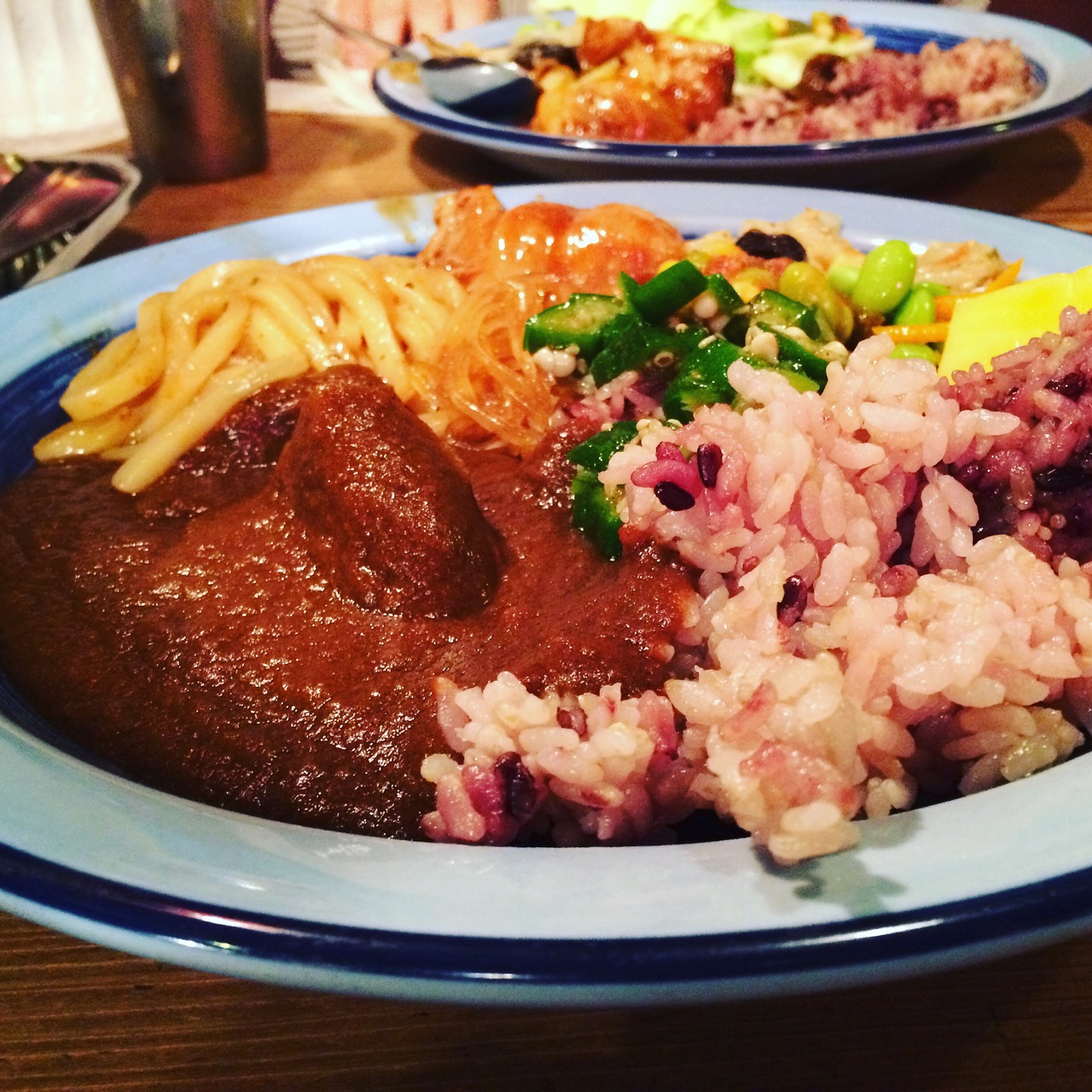 カレーチェーン店の新橋店。駅からも徒歩数分の場所にあります。お店は地下で少し手狭です。ランチは1,000円でビュッフェ形式。健康志向のお店なのか、ライスは五穀米もあり、おかずも野菜中心のヘルシーな品揃えで女性にもウケがよさそうです。カレーは2種類➕激辛ルーもあり、お肉がトロトロでおいしかったです。もちろんお腹いっぱいになりますが、残すとペナルティで1,000円取られるとのことですので注意です。