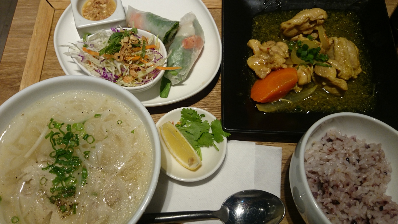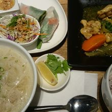 本日の日替り定食といったようなセットメニューを頂きました。どれも美味しかったですが、鶏肉のフォーとデザートのチェーが印象に残りました。