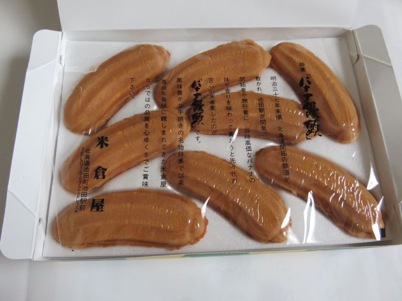 箱を開けるとバナナの香り、バナナ型の饅頭が8個。こりゃ面白い。