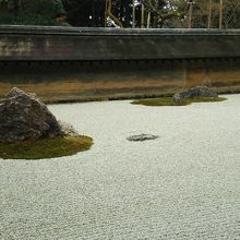 白砂と15個の石で禅の世界を表現した石庭で有名です。初めて本物を見ましたが、思ったより小さい印象です。水戸光國がおくった知足のつくばいも印象に残りました。外国人観光客に大人気でした。寺内には大きな池があり、湯豆腐の料理屋もありました。