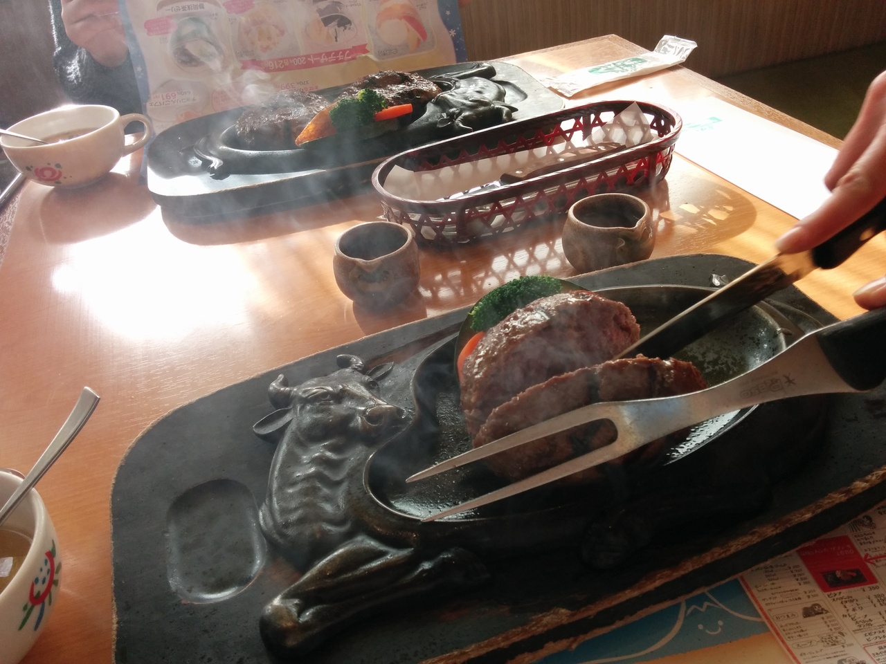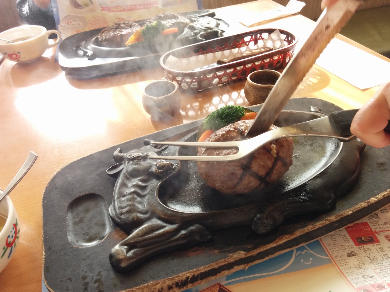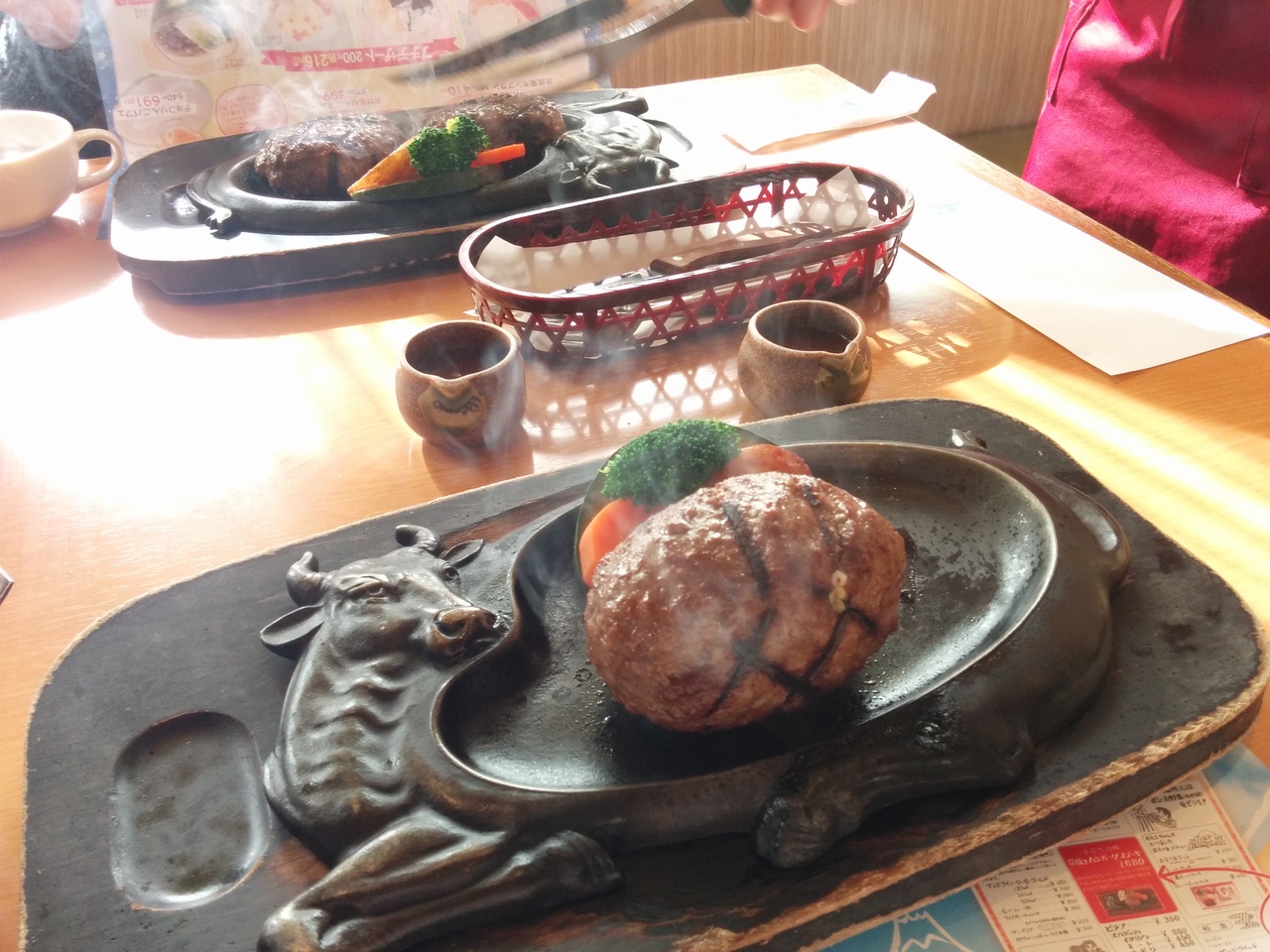 もちろんげんこつハンバーグをオーダー。赤くて香ばしいお肉を心ゆくまで堪能しました。