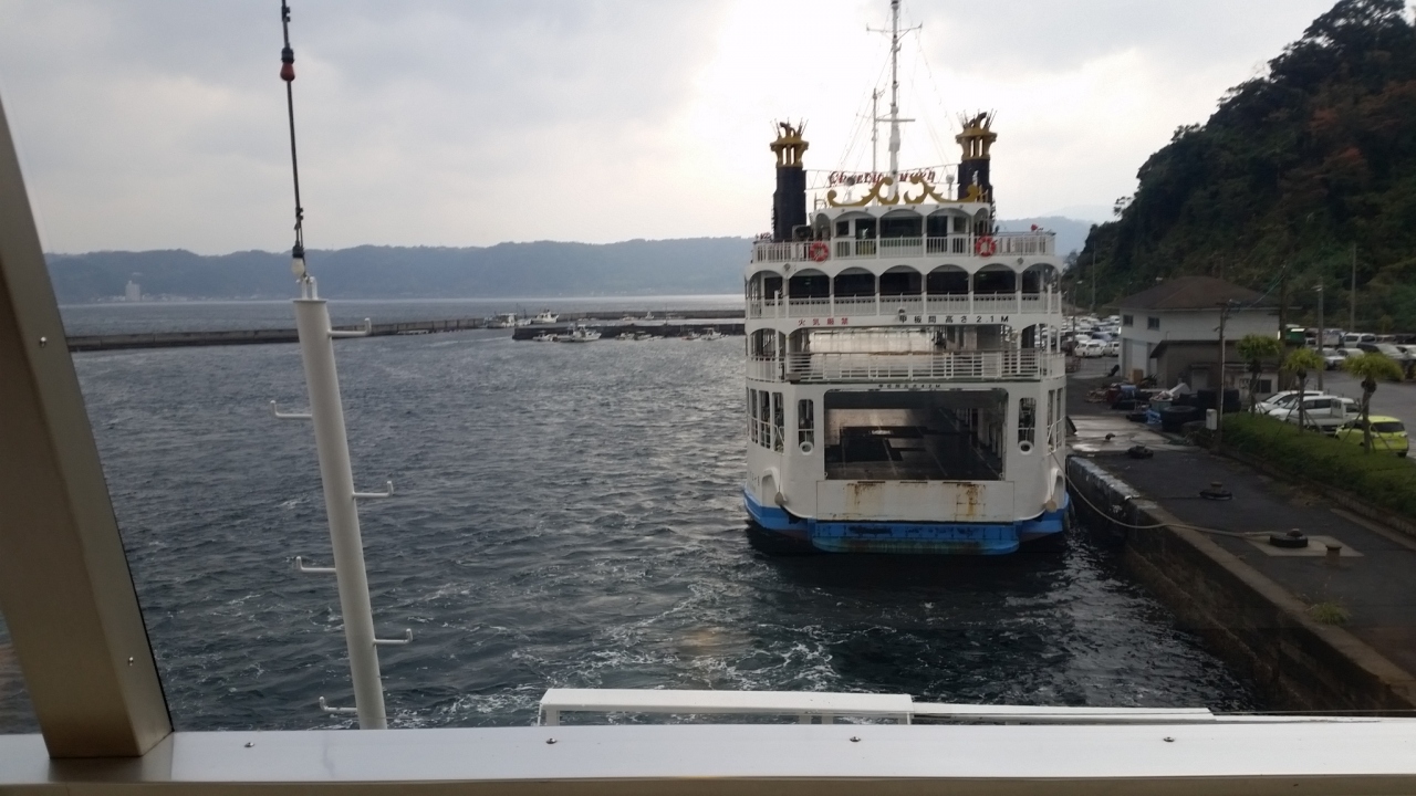桜島フェリー、今回は桜島から市街地に向けての乗船でした。料金所は桜島側ですが、乗用車1台に二人乗ってて1000円ちょっとでリーズナブル。時間短縮にもなるしこれは本格的な交通手段なんだろうな、と改めて思いました。24時間運航だし。