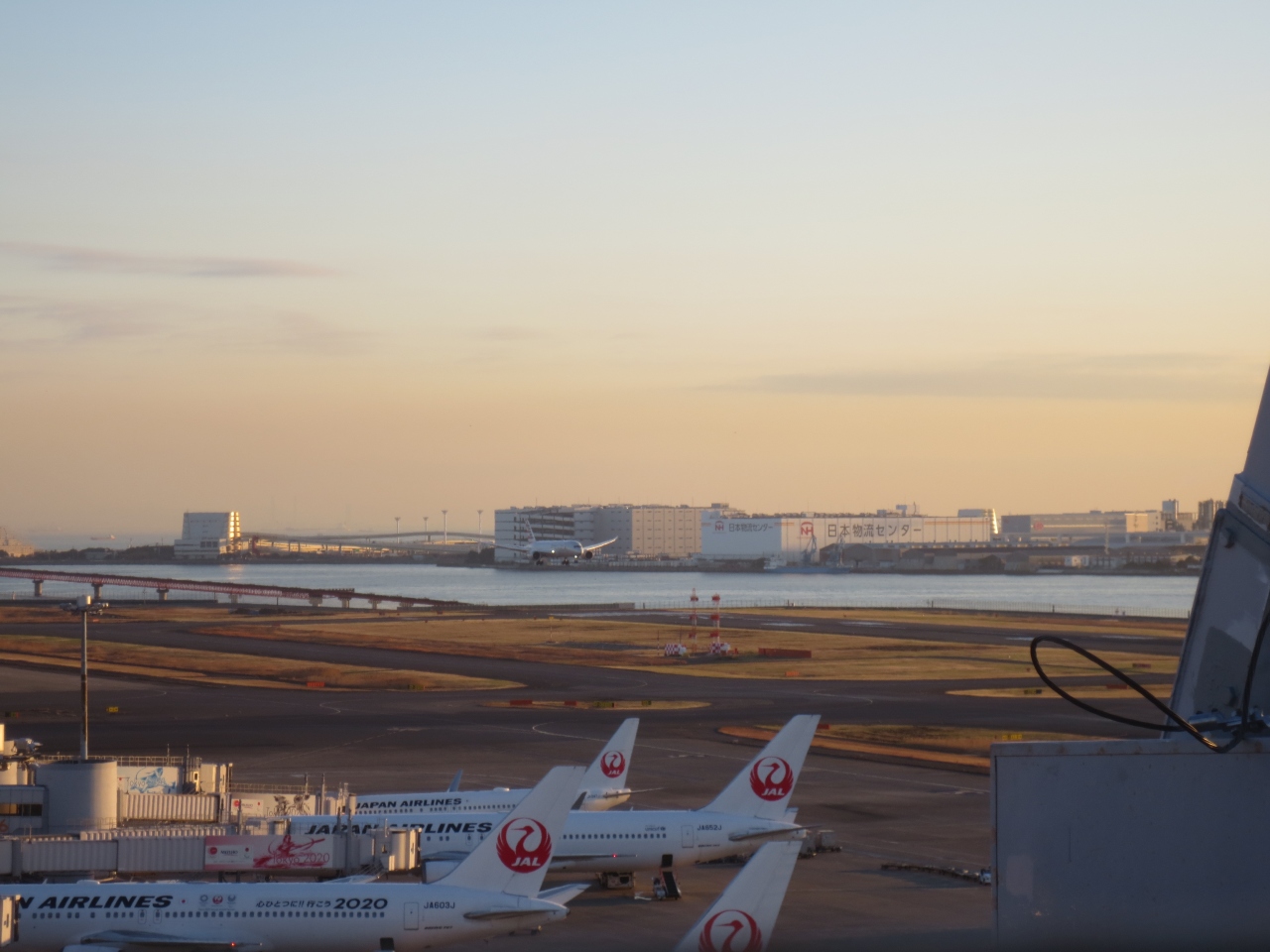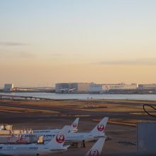 羽田空港第一ターミナルのガリバーズデッキです。通常の展望デッキから更に階段で上がる必要があります。エスカレーターやエレベーターがないので、アクセスはちょっと大変。でも眺めは全然違います。夕方は到着便のラッシュで、次から次へと各エアラインの着陸シーンを見ることが出来ます。乗っているとわかりませんが、着陸の瞬間は、少し機首を上げて、まず後輪から着地し、そのあと前輪が着地していました。その後の逆噴射音が、ゴーンという音を立ててまた凄いです。大型機の着陸シーンは迫力がありました。