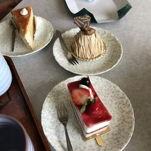 ケーキは懐かしいものから最近の流行を取り入れたものまであれこれあります。甘さ控えめ