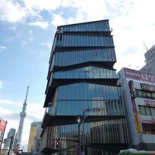 雷門の斜め向かいにある斬新な外観の建物が「浅草文化観光センター」で、内部には観光案内所や展望施設などがあります。