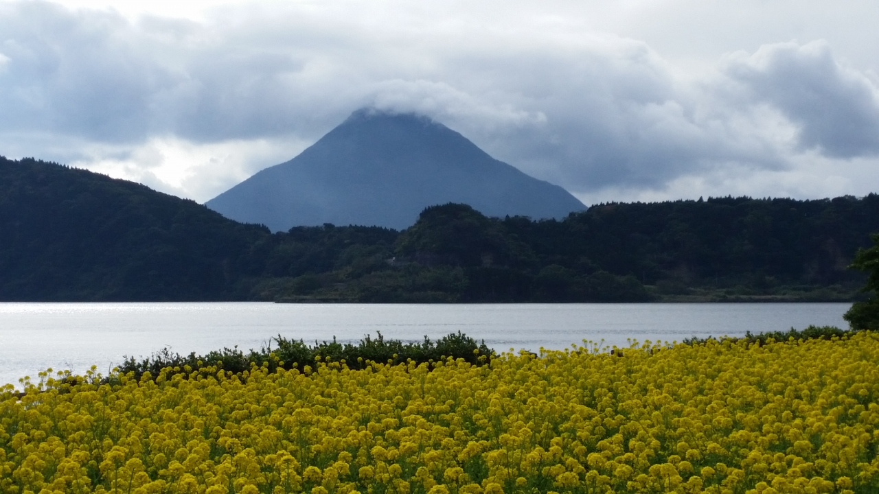 指宿から指宿スカイラインに行く途中にある池田湖。イッシーで有名ですが、イッシーは当然のように空振りでしたが、遠くに開聞岳、手前には菜の花、と池田湖といういい景色を見ることができました。鹿児島って菜の花が似合いますよね。