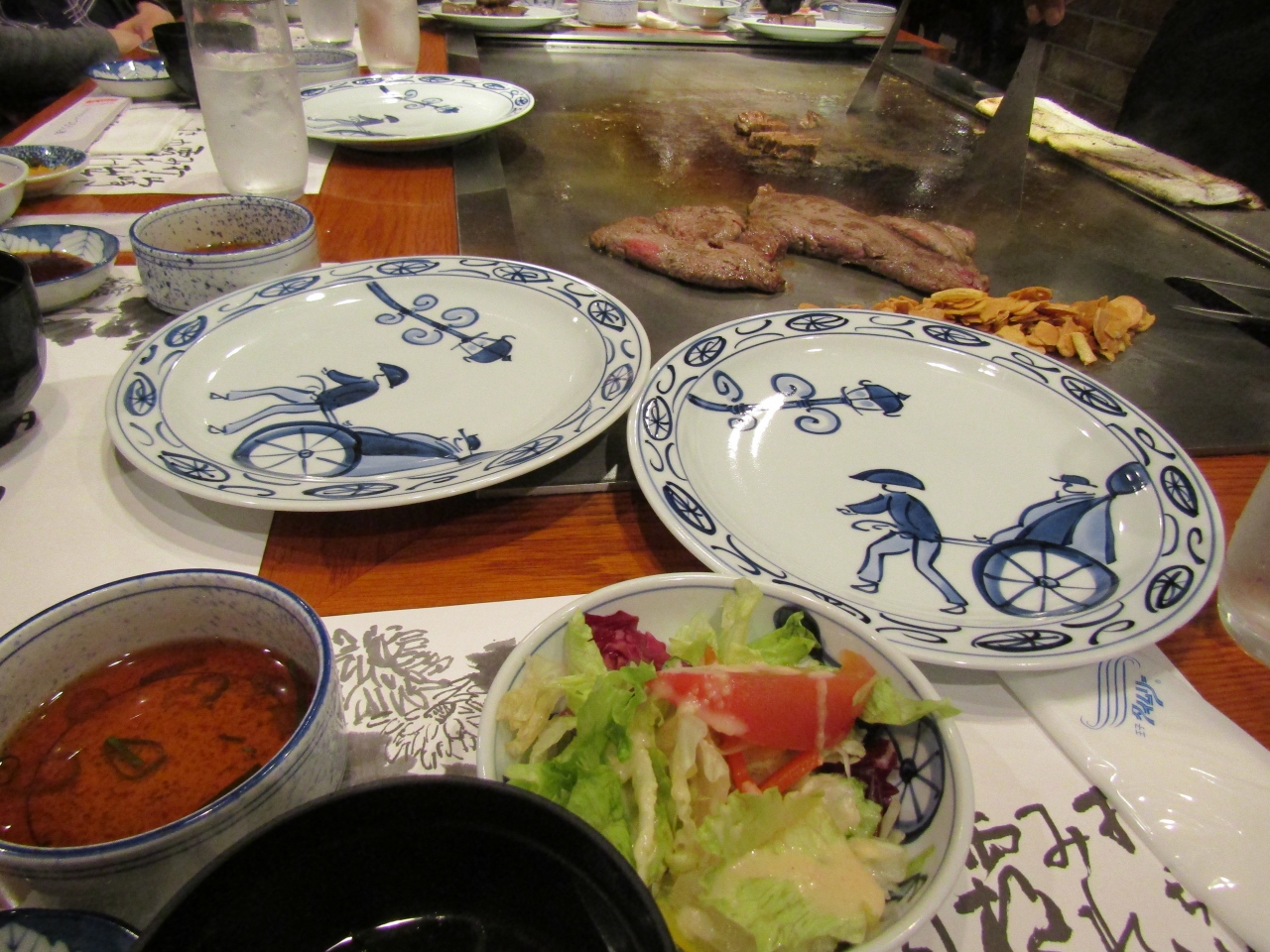 鉄板焼きのコーナーがいくつもあります。お客さんは外国のグループも続々と来ていました。