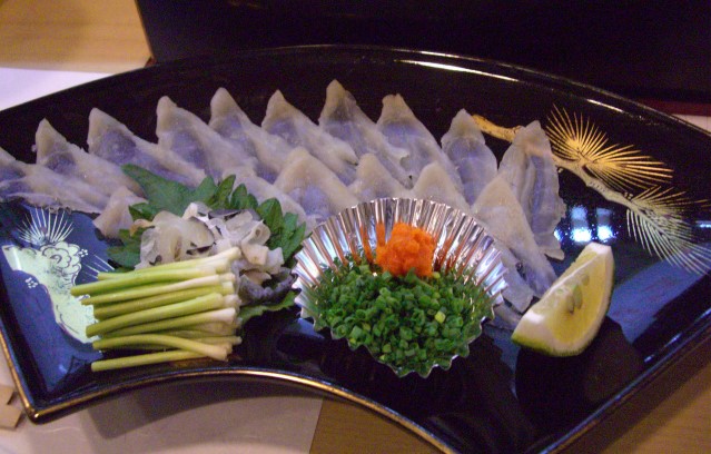 福岡、北九州旅行の際いってきました。唐戸市場内にも飲食店はあったけど、人いっぱいだったので、こちらでお寿司頂きました。普通にセットをいただいたんですが、セットにはふぐが入っておらず、せっかく下関にきたんだからと、ふぐさしを頼んでみました。こうやってすぐふぐさしが出てくるのも本場のあかしですね!