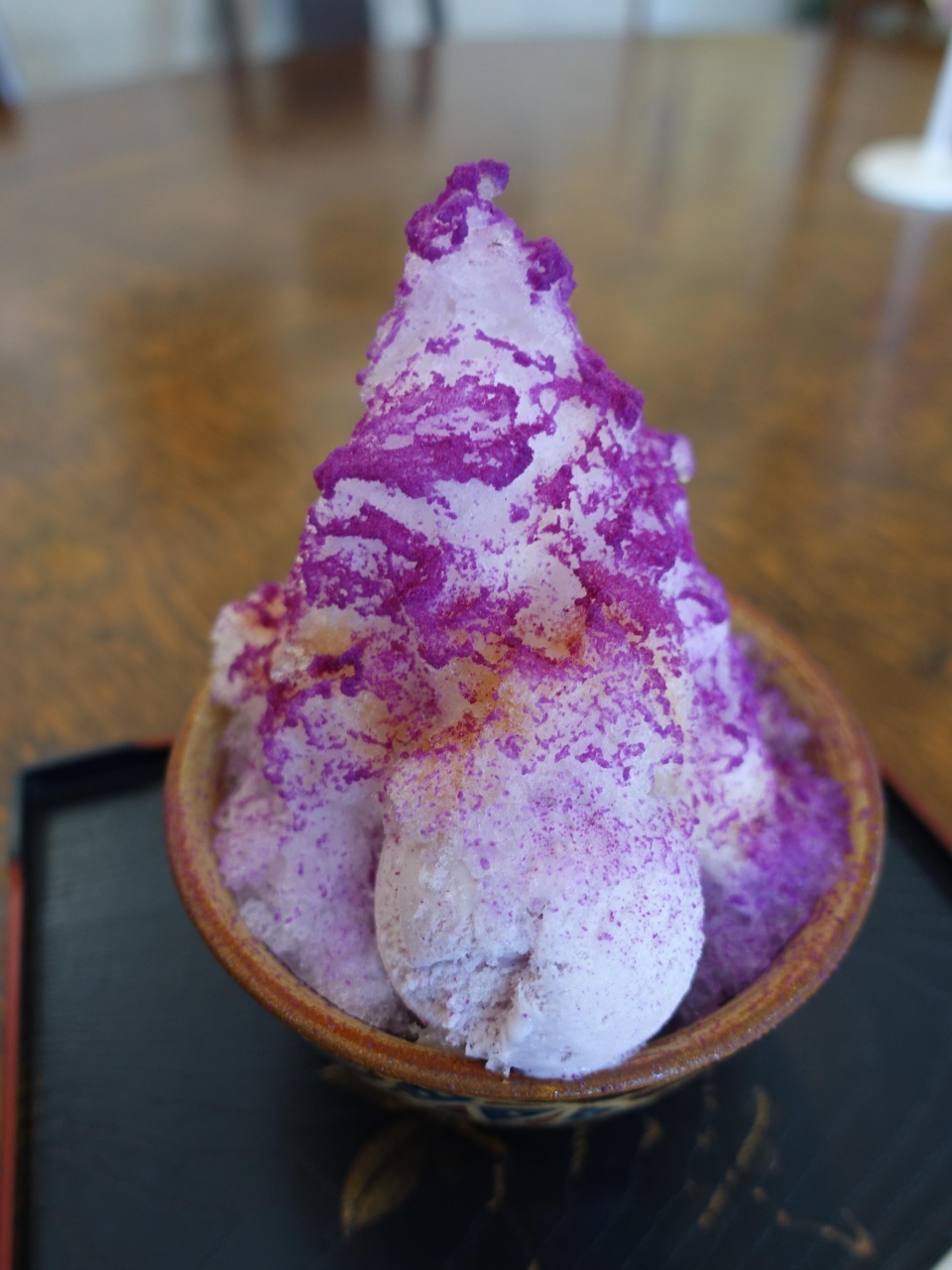 「座喜味城跡」のすぐ近くにあるお店です。ガイドブックに出ていたので、城跡観光後に立ち寄りました。テイクアウトも出来ますが、心地よい店内なので、店内で食べることをお奨めしたいです。かき氷は期待通りのおいしさて、店内は想像を超えてユニークでした。フィギュアだったりコミックだったりが所狭しと並んでおり、独特の世界観を造りだしていました。