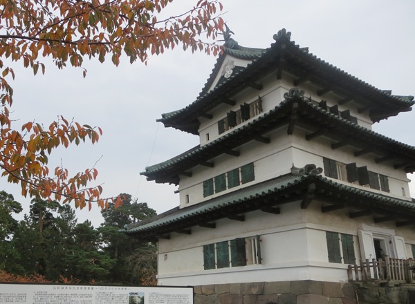 有名な弘前城ですが、思ったより小さく見えました。最初に建てられた本丸は築城後まもなく雷で焼失し、その後再建が許されずに櫓を改築したものが現存する本丸とのことです。弘前公園はとても広く紅葉もきれいだったので、今度は桜の頃にも訪れてみたいと思いました。