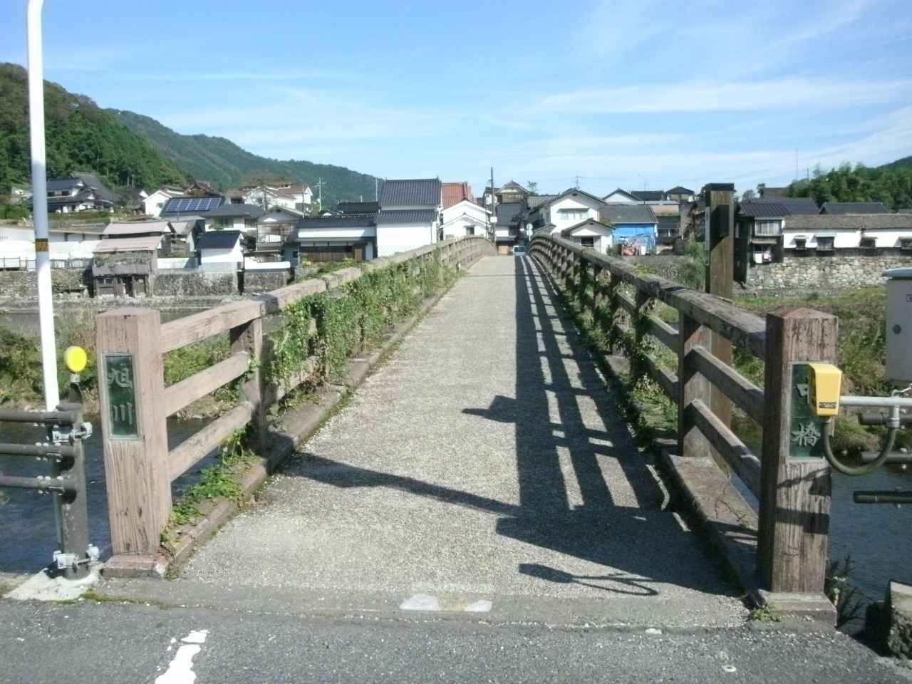 岡山県を流れる一級河川で、延長が150kmほどもあるので、一口に“旭川”と言っても場所によってさまざまな風景があると思いますが、勝山の町並み保存地区を散策した後、旭川の川沿いを歩いてみました。歩行者専用橋である“中橋”を中心に、川沿いには石垣の上に古い民家が立ち並び、高瀬舟発着場跡などの史跡もあってなかなかいい感じのところでした。“町並み保存地区”から歩いてすぐなので、ついでに足を延ばされることをお勧めします。