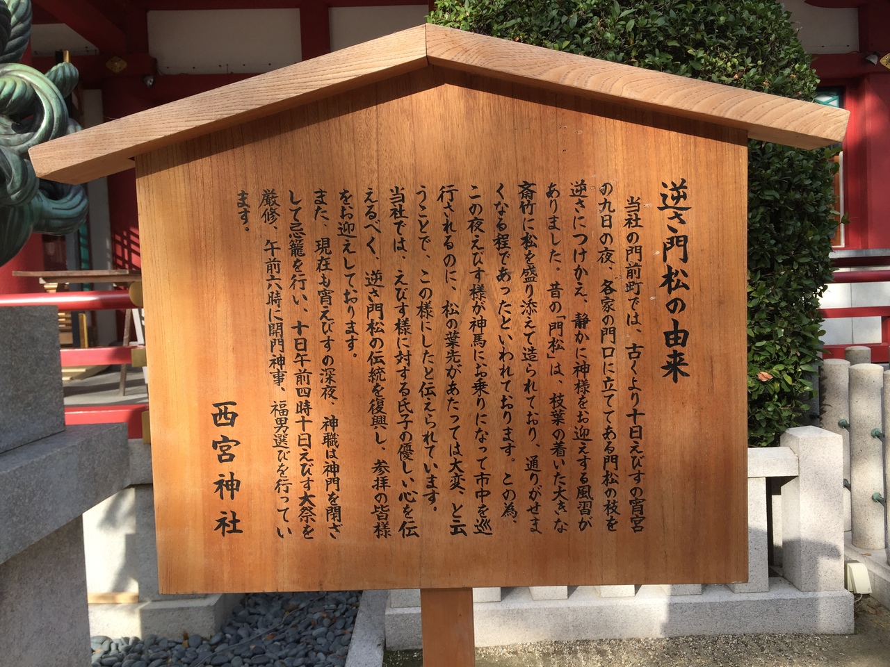 阪神高速三号の西宮インターのすぐ近くにある神社。お正月にテレビ番組やニュースでも多く取り上げられる福男を取るために門から本殿まで走るところ。駐車場は境内にあり、平日なら充分なスペース。本殿の対面に池があり周回できます。