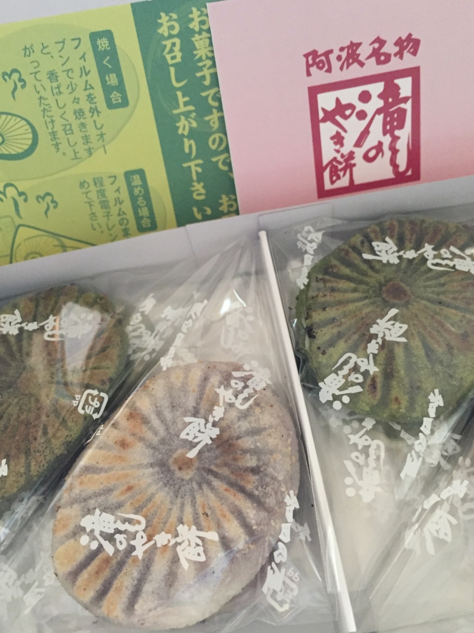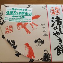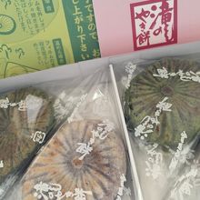 天正十三年,家政公に献上されたという焼餅.粳米と糯米を挽き,眉山の錦竜水で皮を作り漉餡を包んでいます.一つずつセロファンで区切りされ独立性と共に清潔感もあります.餅とは言ってもあっさり味で小さいので,2つ3つはすぐに食べてしまいます.