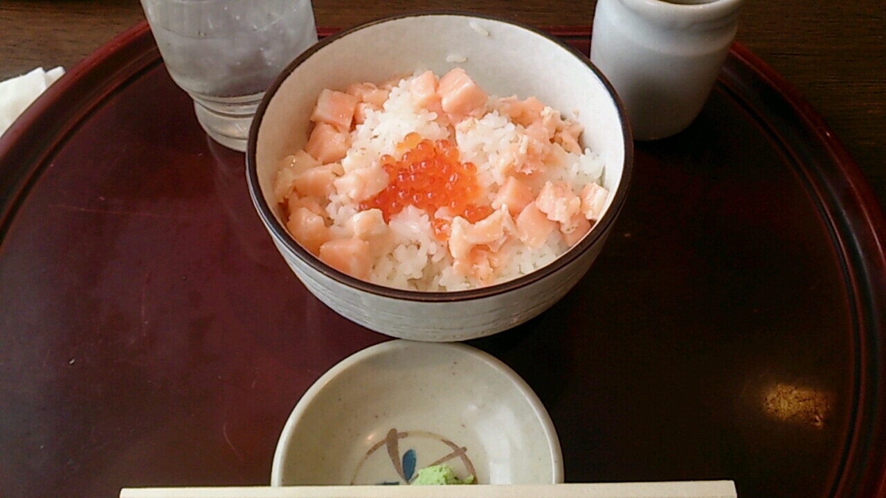 家族はうどんを食べましたが私は単品で丼を食べました。サーモン&いくら丼、美味でした。
