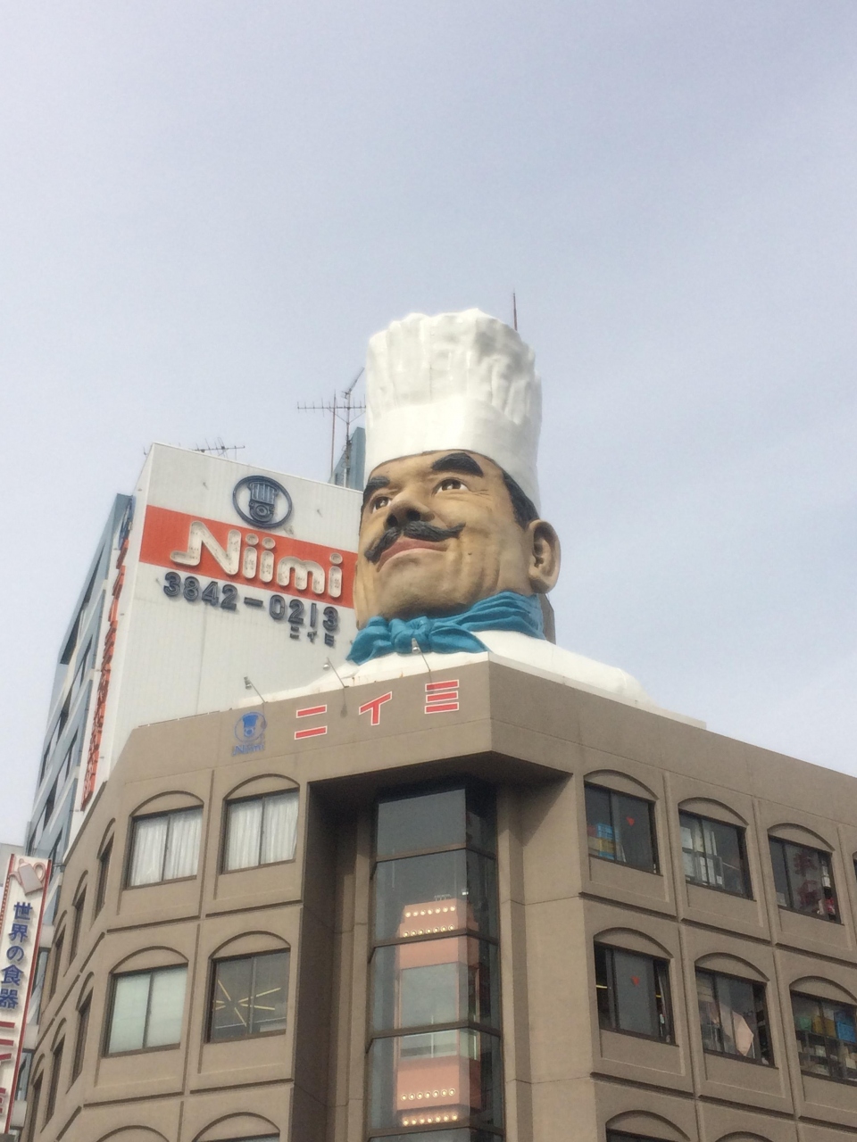 銀座線、田原町駅を降りて上野方面に少し歩くと大きなシェフの像が屋上に見えてきます。この像を見るとカッパ橋商店街に来たなと実感できます。お店はかなり大きく、見たことのない調理機や食品サンプルまであり、これだけの道具を目にすると、料理が楽しくできるような気がします。