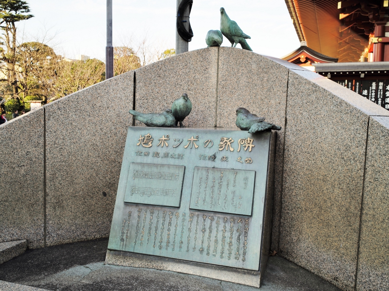 童謡「鳩ポッポ」の歌碑が浅草寺の境内にありました。