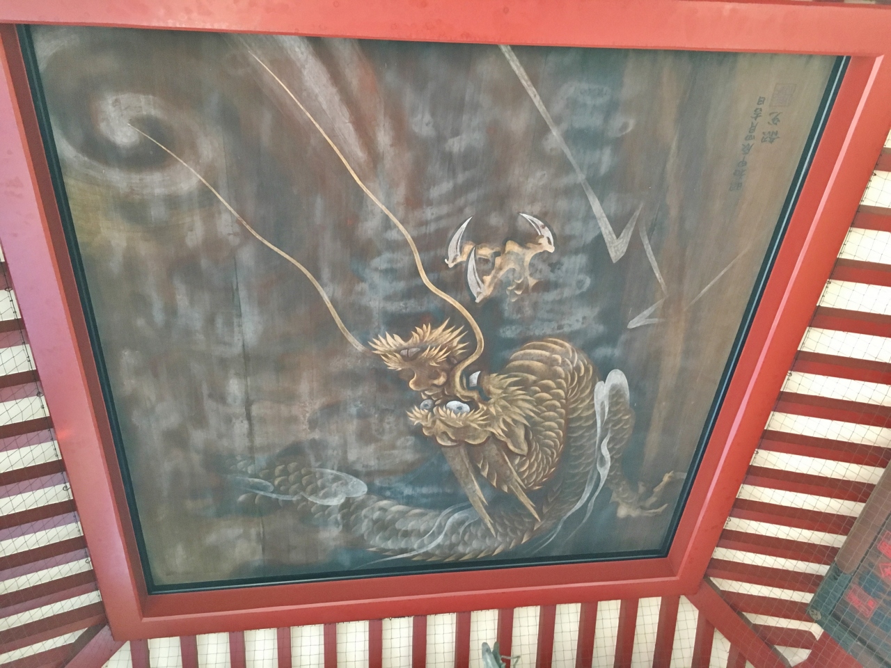 上を見上げると天井には見事な龍の絵が描かれていました。皆さん手元ばかり見ていますが、ぜひここでは顔を上げて天井も見ることをお薦めします。