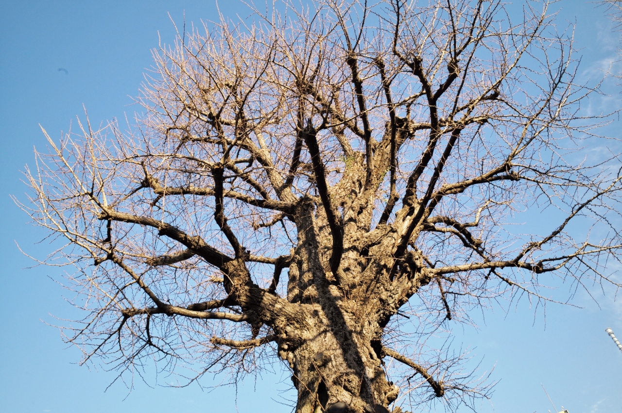 太い幹には割れ目がありましたが、大きく枝を張り出した姿からはまだまだ勢いを感じました。
