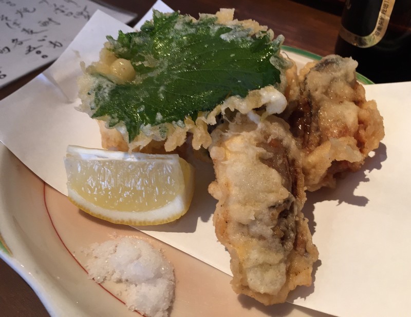 季節感ある牡蠣の天ぷらは粗めの塩で頂く!!