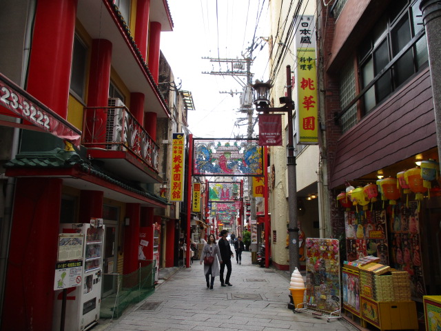 路面電車で正覚寺下まで行き、そこから高島秋帆旧宅から唐人屋敷跡を経て西方向に降って行くと湊公園前に鳥居を目印とする新地中華街の入口が視野に入る。