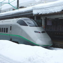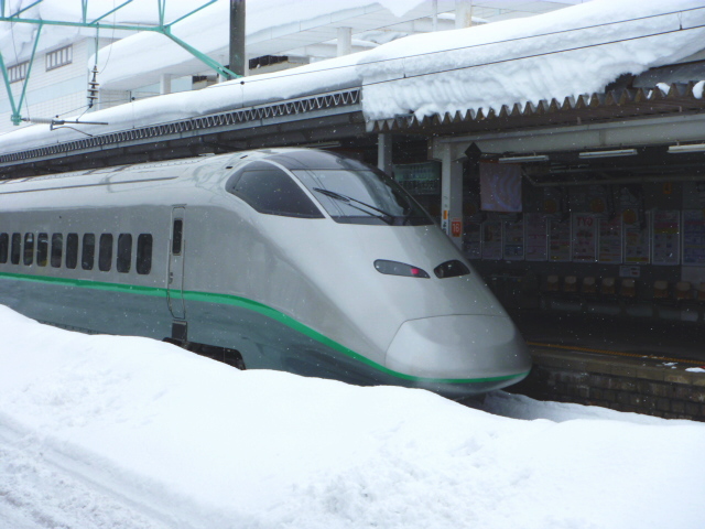 新幹線って名前が付いてるけど、いわゆるミニ新幹線といわれるものです。東京から福島までは新幹線の線路を走りますが、福島から先は在来線を走ります。そのせいで山形県内はあんまりスピードが出せません。在来線内は新幹線ではなく、特急扱いということです・・・