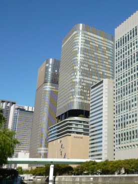 久しぶりに大阪中之島を散策した時に、前回この界隈を歩いた2009年にはなかった真新しい高層ビルが出来ていました。それが中之島フェスティバルタワーで、中には朝日新聞大阪本社やオフィスとして使われている他、名前の通りクラシックコンサートが開催される大きな音楽ホールがあり、中之島の新しいランドマークの一つになっていました。高さは約200mということで、雲一つない青空に向ってすっくと伸びる姿は存在感抜群でした。