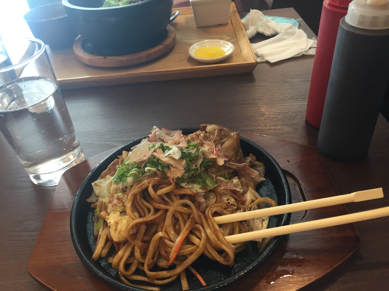 そばめしは石焼きの中に入れられてきて熱々。ちょっと味が濃いけど美味しい。