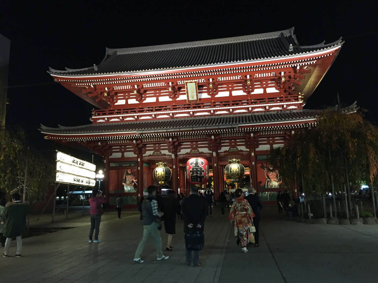 地方から来た友人との下町ツアーのラスト。蛇骨湯と神谷バーとラーメンでいい気分でしたが、夜の浅草寺は寄る価値ありです。仲見世が閉まってる雰囲気もなんか幻想的。お参りとかおみくじはできるので空いてる夜は狙い目かもしれません