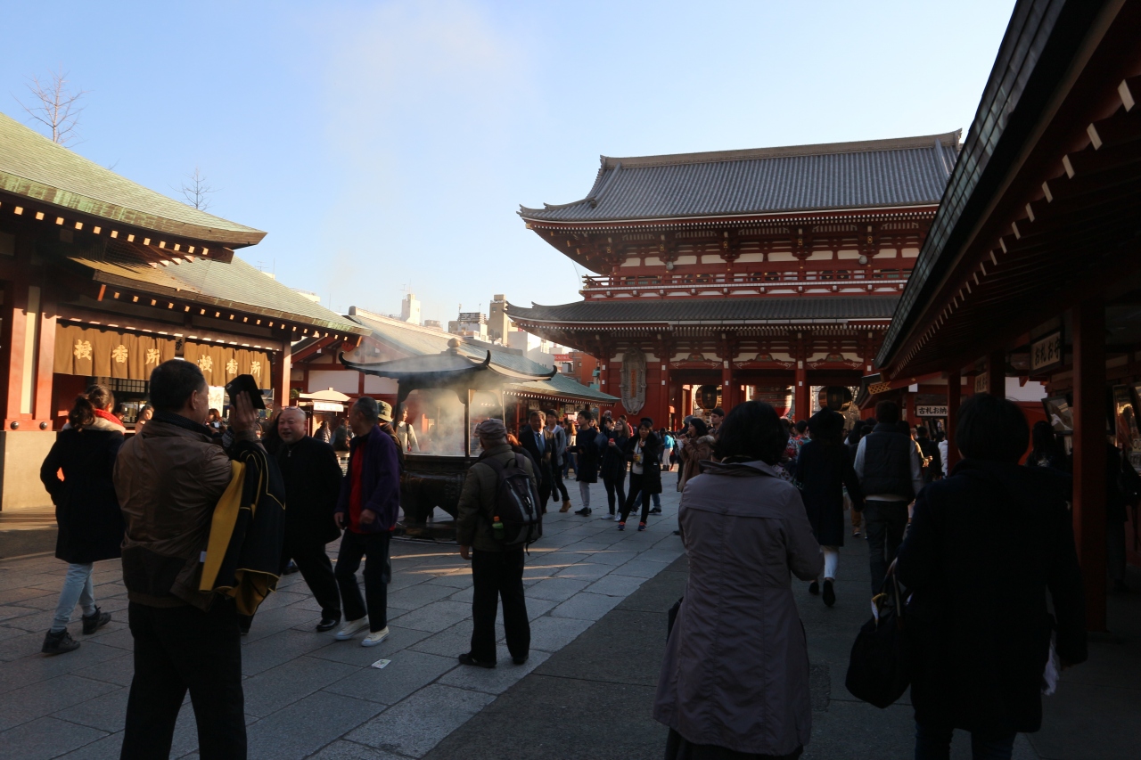 浅草観光のめだま、浅草寺は人がいつも沢山いますが、市や祭りが重なると更に人が多くて大変です。TV局クルーも来たりしてTVのインタビューをされたい方も来るとよいかもしれません。歳の市(羽子板市)がやっていて、外国観光客も含めてかなりの人ゴミでした。