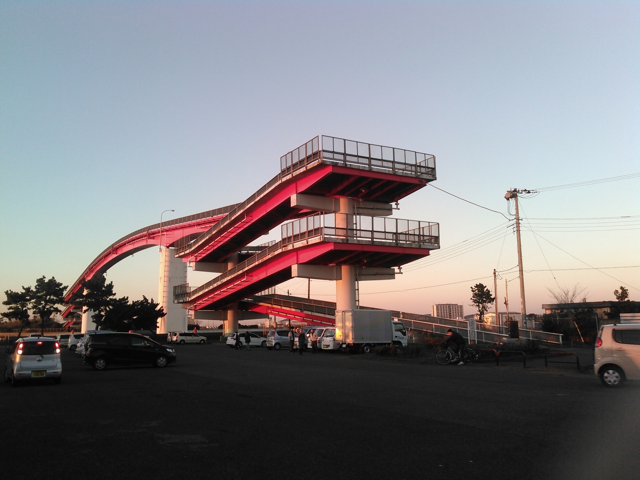 木更津港の沖合の島にある公園です。公園入口に架かられた変な形をした中の島大橋は、日本一高い歩道橋とのことです。橋の上からは東京湾を一望でき、特に天候に恵まれると、日没前後の時間帯は橙色で綺麗な夕陽と富士山を眺める事ができます。